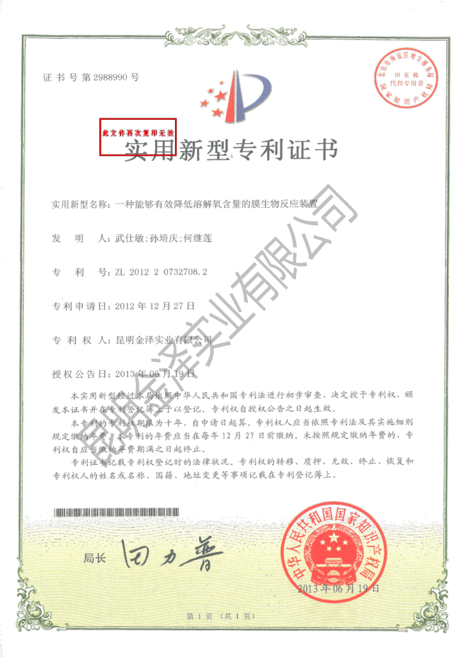 一種能夠有效降低溶解氧含量的膜生物反應裝...