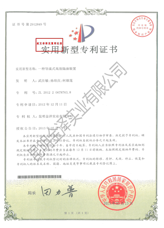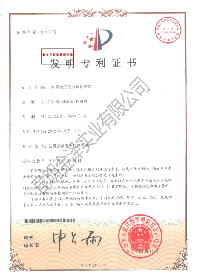 一種導流式高效隔油裝置(專(zhuān)利)