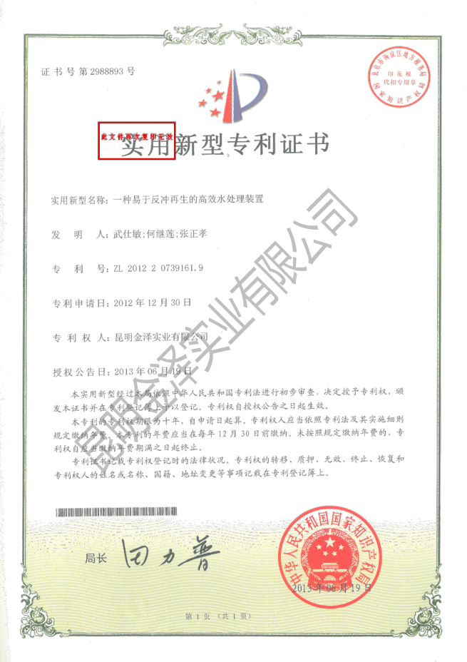 一種易于反沖再生的高效水處理裝置